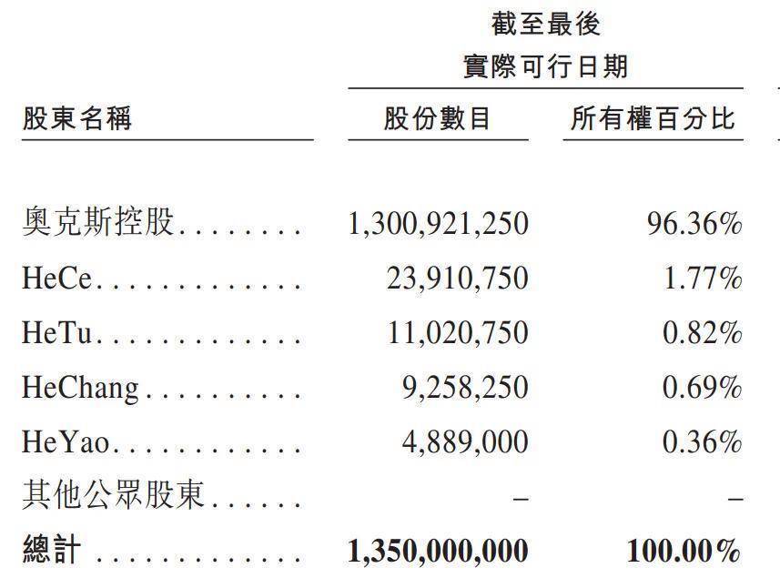IPO前,奥克斯控股持股为96.36%,HeCe持股为1.77%,HeTu持股为0.82%,HeChang持股为0.69%,HeYao持股为0.36%。
