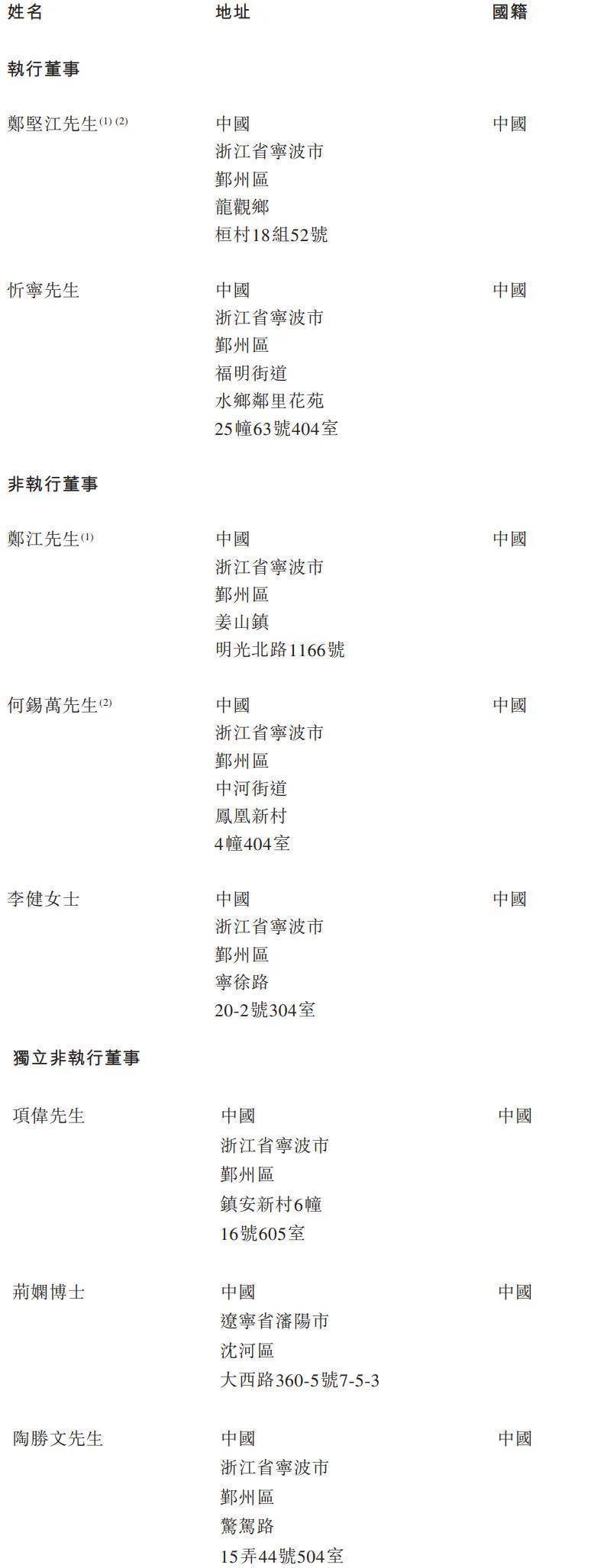 郑江,58岁,自2024年10月起担任董事,并于2025年1月调任为非执行董事。郑先生于2003年6月至2013年6月担任宁波奥克斯电气董事,并自2015年7月起再次担任该职务。其主要负责监督董事会事务并就集团业务运营提供战略建议和指导。